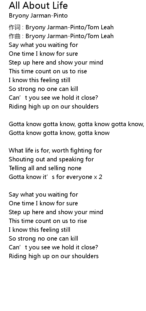 | 作词 : Bryony Jarman-Pinto/Tom Leah | |