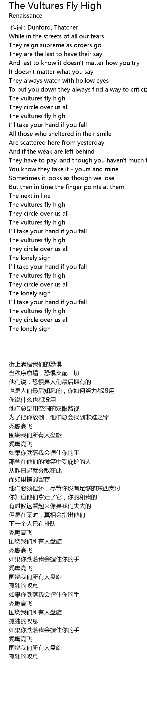 | 歌曲 | The Vultures Fly High |