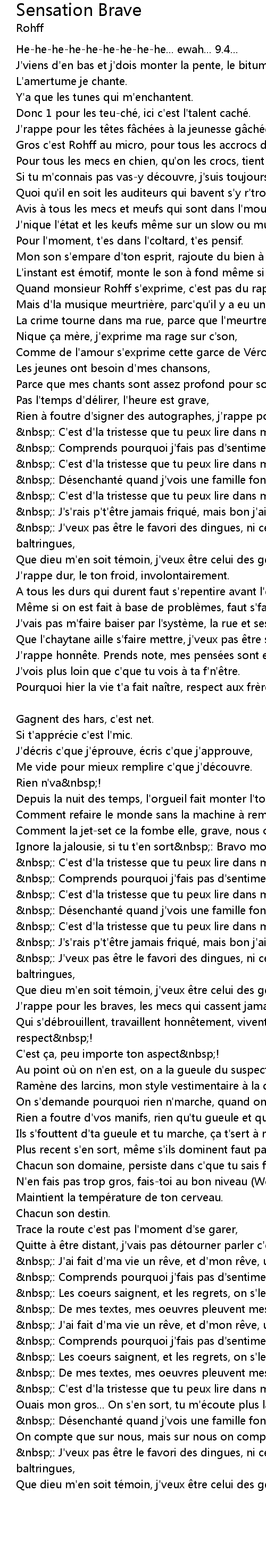 | Quand monsieur Rohff s' exprime, c' est pas du rap de f tards. | |