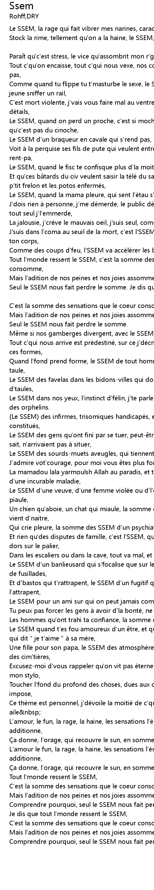 | Le SSEM, quand la mama pleure, qui sent l'é tau s' refermer, le SSEM, | |