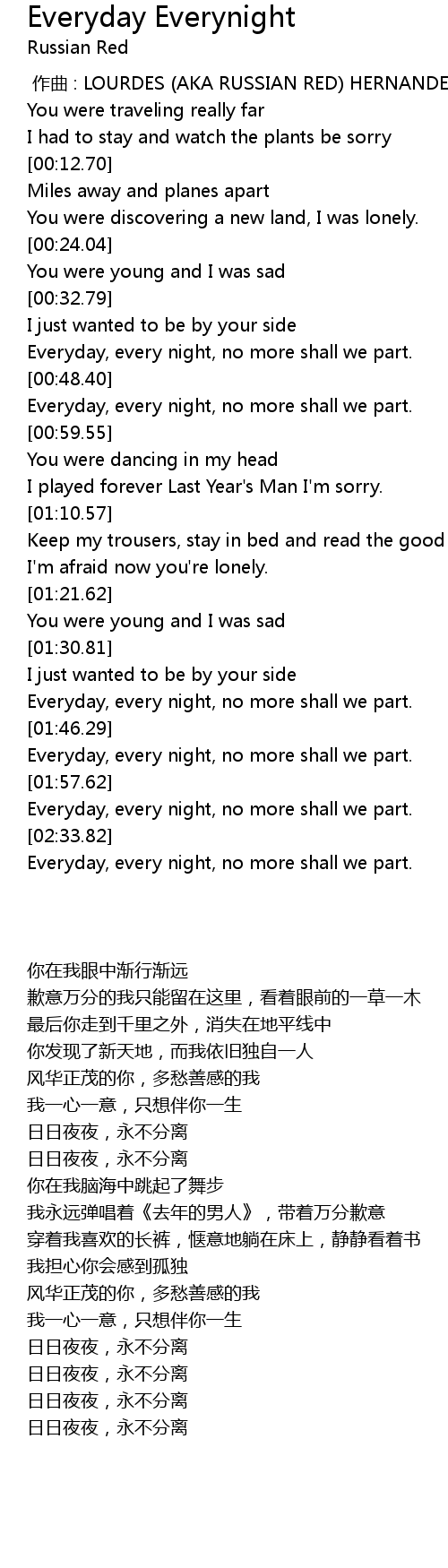 | [00:49.92] | Everyday, every night, no more shall we part. |