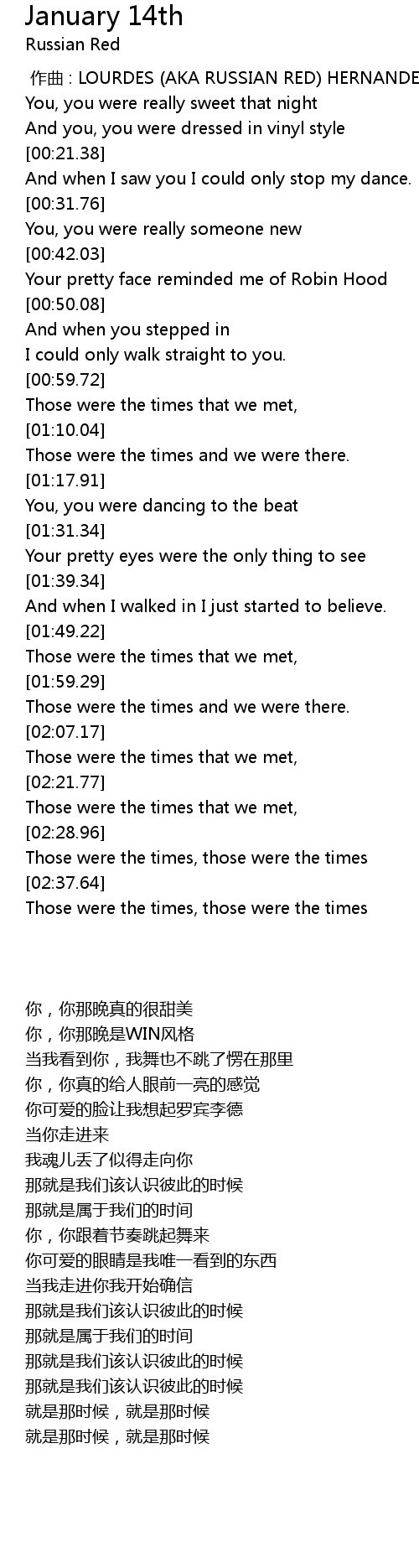 | 歌曲 | January 14th |
