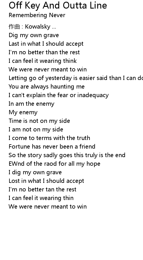 | 歌曲 | Off Key And Outta Line |