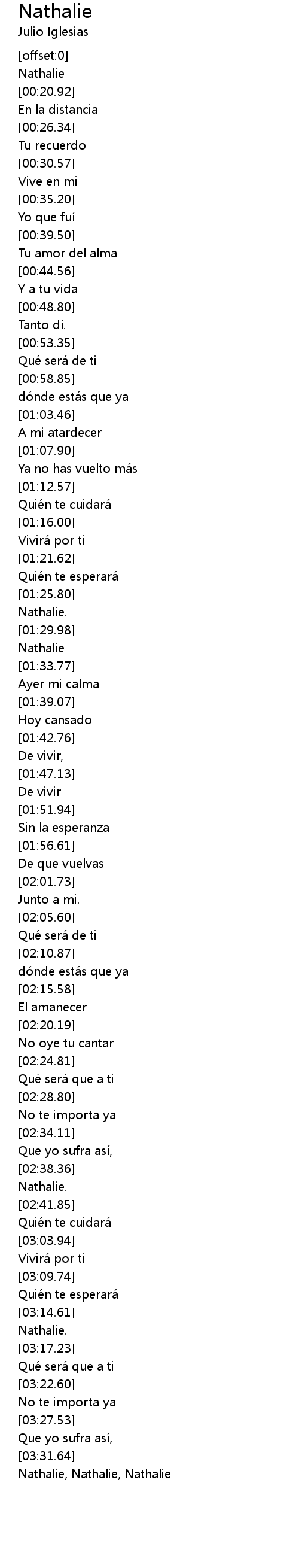 | [03:32.46] | Nathalie, Nathalie, Nathalie |