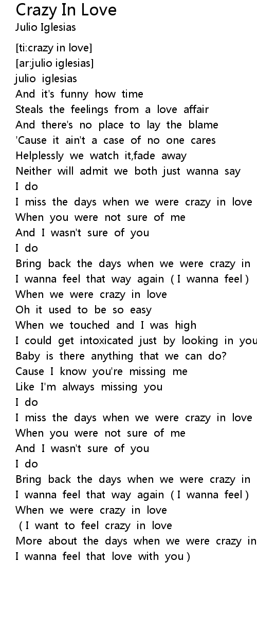 | [01:11.331] | Bring back the days when we were crazy in love |