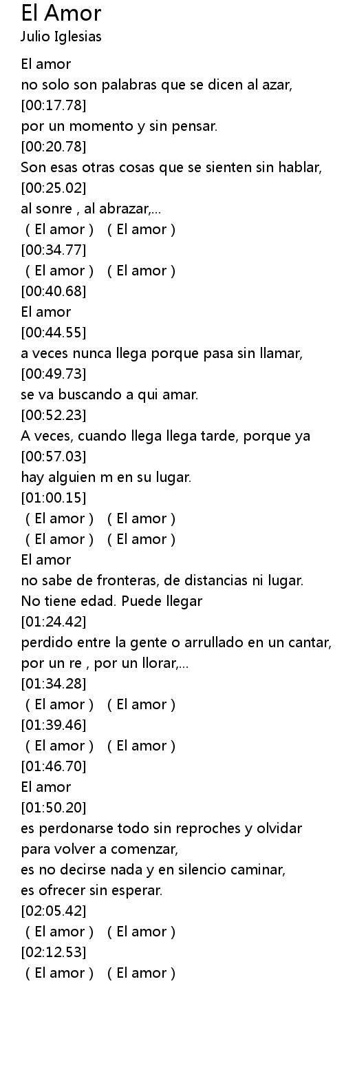 | [01:42.27] | El amor El amor |