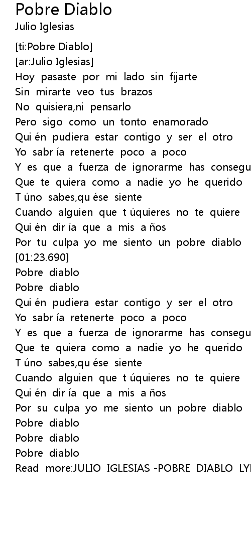 | [02:33.328] | Read more: JULIO IGLESIAS POBRE DIABLO LYRICS |