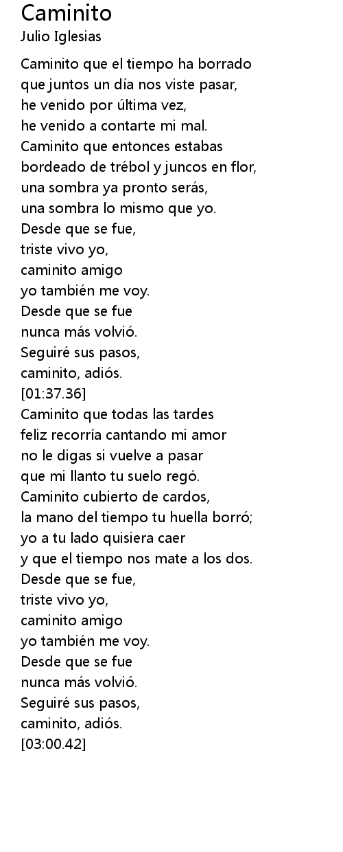 | [01:33.42] | caminito, adió s. |