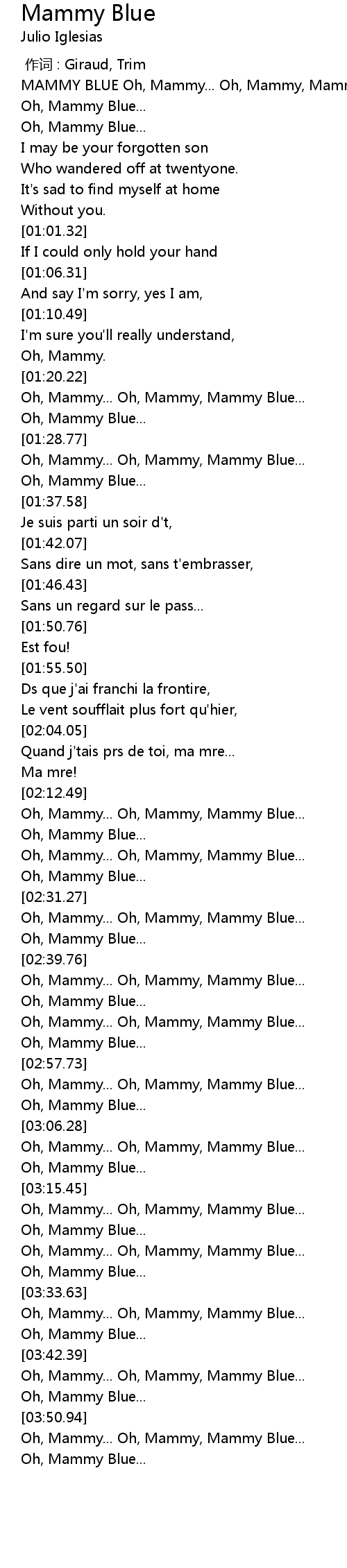 | [03:16.70] | Oh, Mammy... Oh, Mammy, Mammy Blue... |