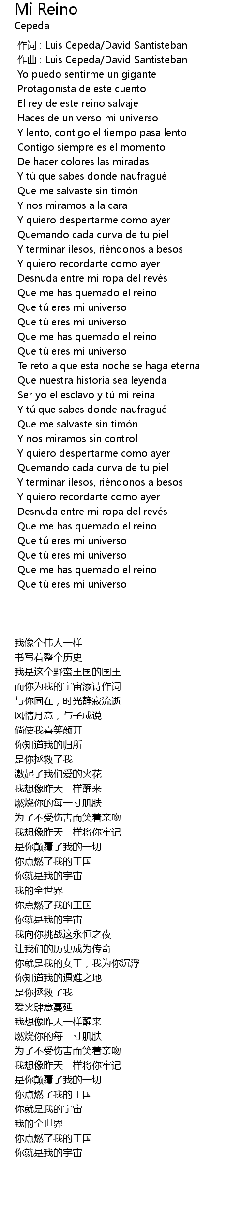 | [00:01.000] | 作曲 : Luis Cepeda/David Santisteban |