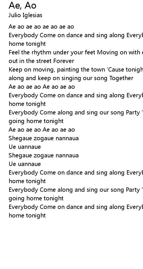 Everybody Come on dance and sing along Everybody feeling right Never going |