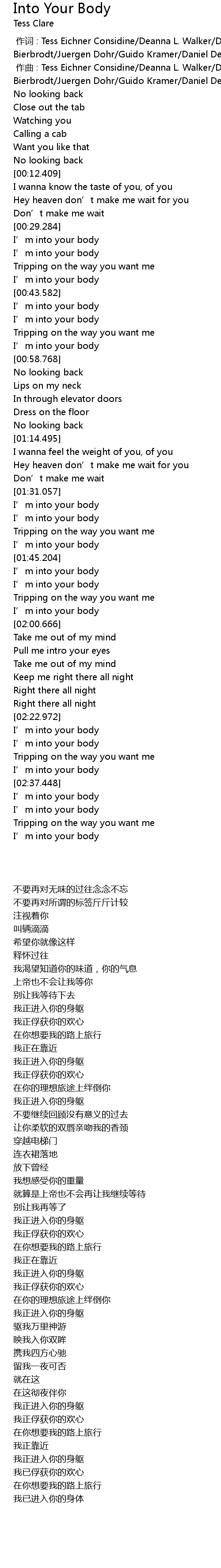 | [00:00.000] | 作词 : Tess Eichner Considine/Deanna L. Walker/Dennis Bierbrodt/Juergen Dohr/Guido Kramer/Daniel Deimann/Stefan Dabruck |