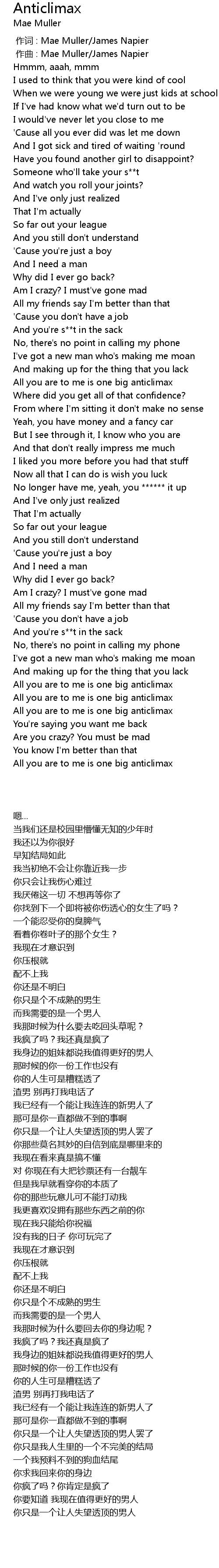| 歌曲 | Anticlimax |