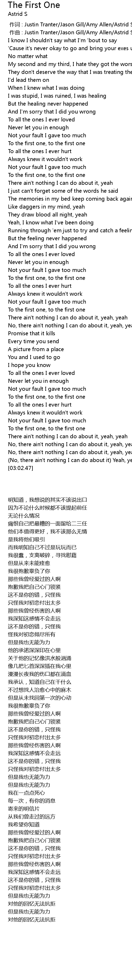 | [00:14.52] | 痛恨自己把最糟的一面留给二三任 |