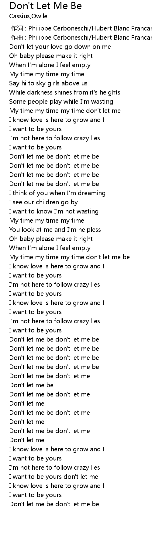 | [02:59.41] | Don' t let me be |