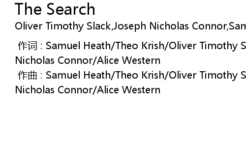 | [00:00.000] | 作词 : Samuel Heath/Theo Krish/Oliver Timothy Slack/Joseph Nicholas Connor/Alice Western |