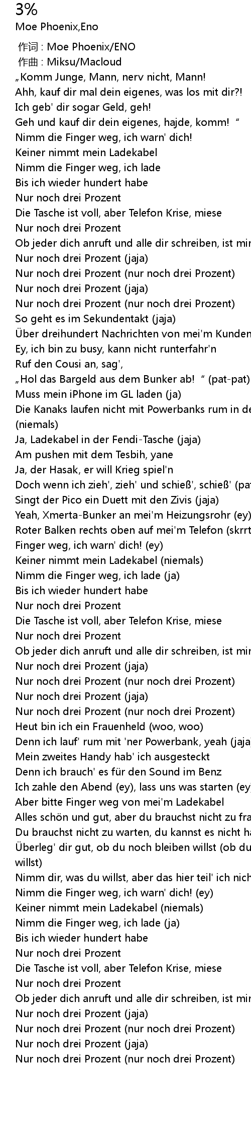 | [00:33.91] | Nur noch drei Prozent (nur noch drei Prozent) |