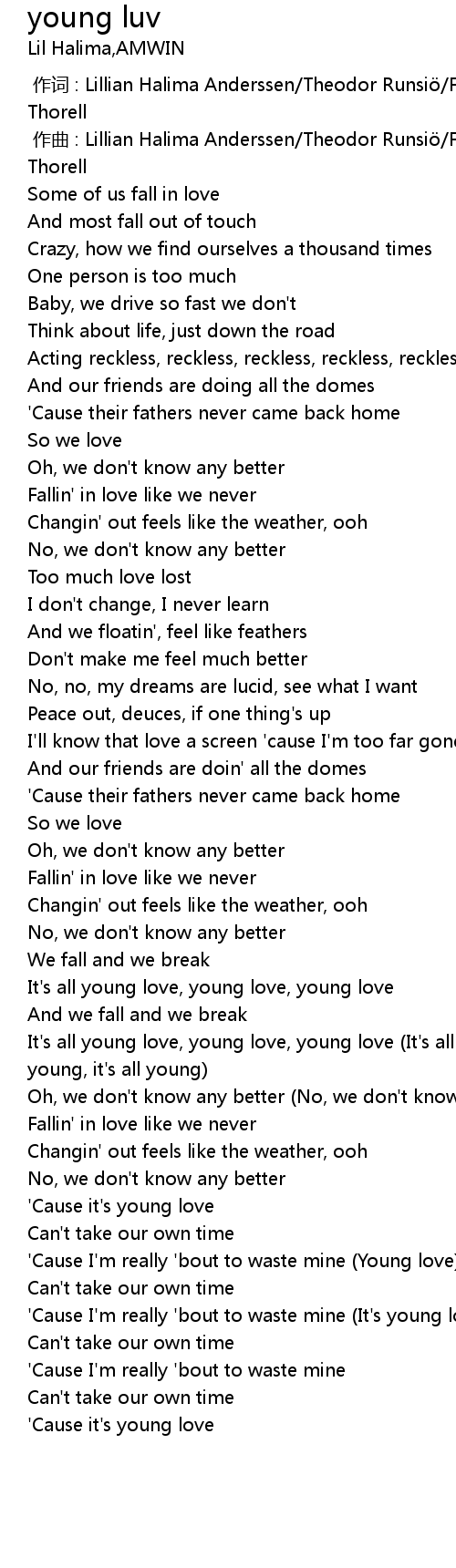| [02:06.314] | It's all young love, young love, young love (It's all young, it's all young, it's all young) |