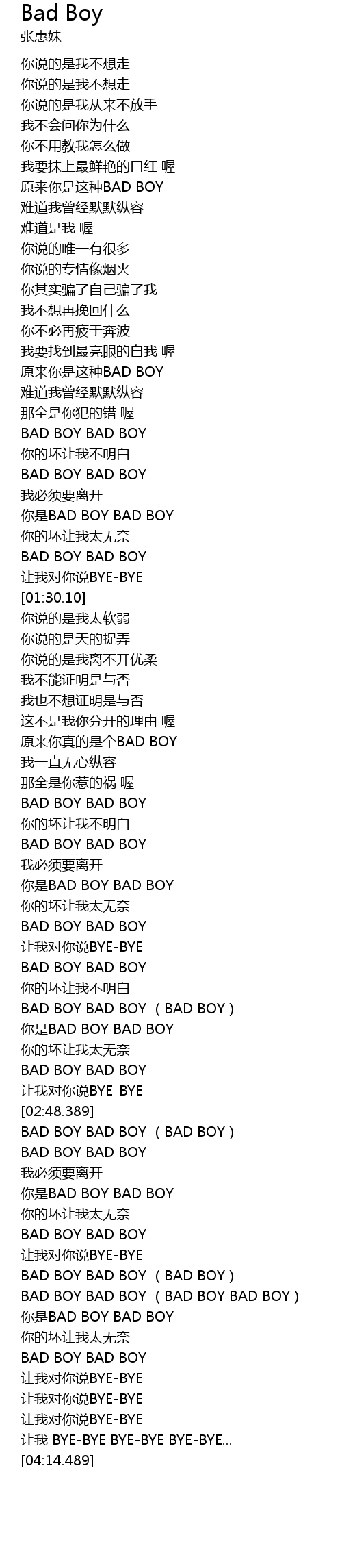 | [03:35.759] | nǐ shì BAD BOY BAD BOY |