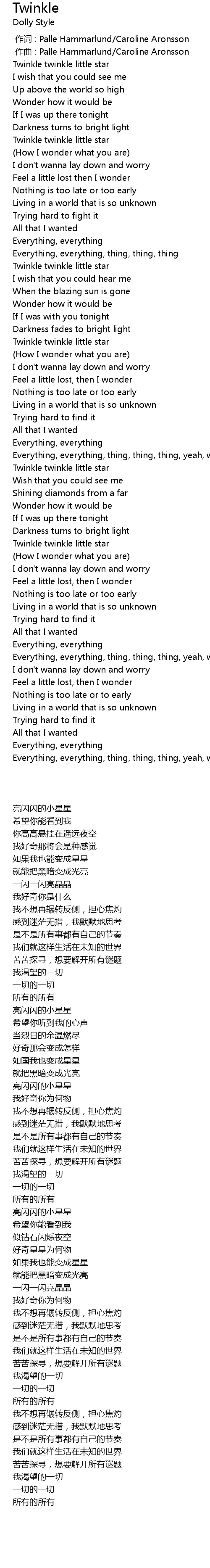 | [00:39.39] | (How I wonder what you are) |