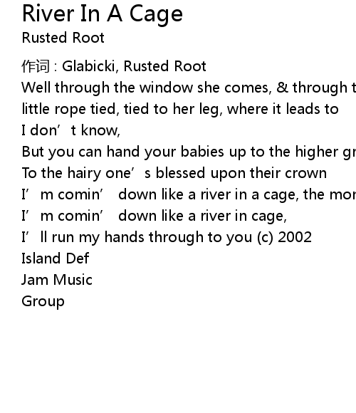 | I’m comin’ down like a river in a cage, the monkey see the monkey do, | |