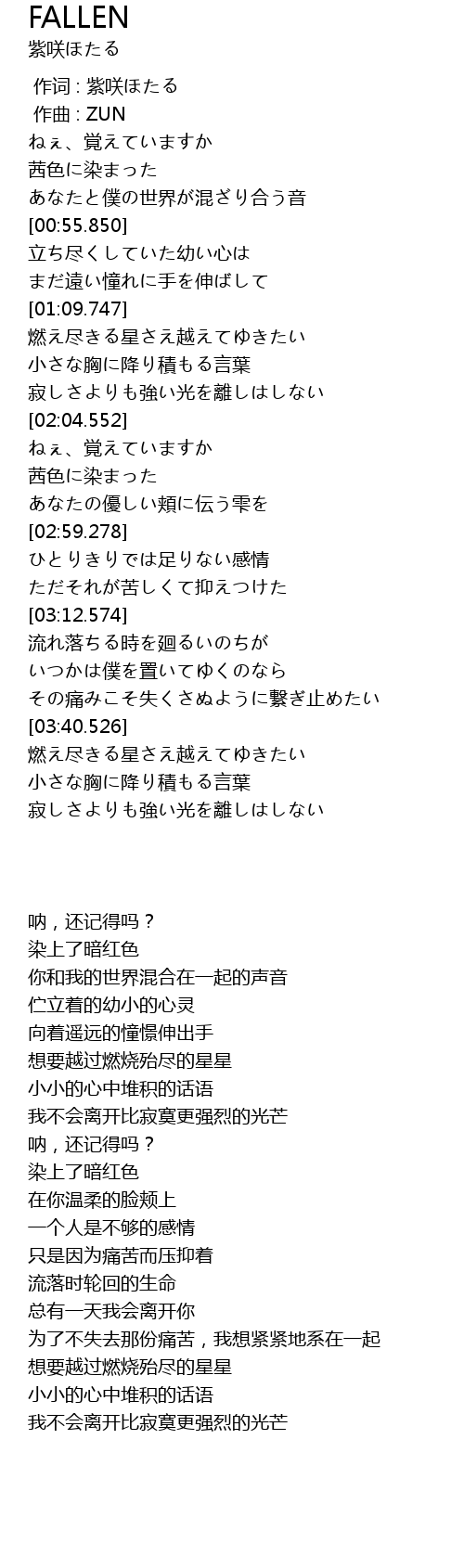 | 歌曲 | FALLEN |