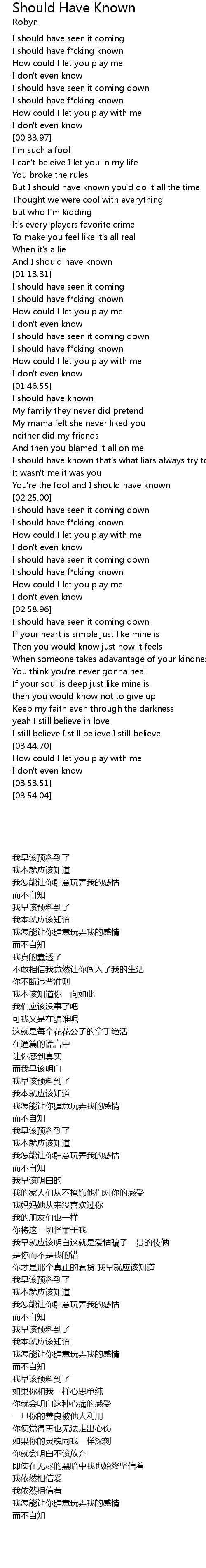 And I should have known |