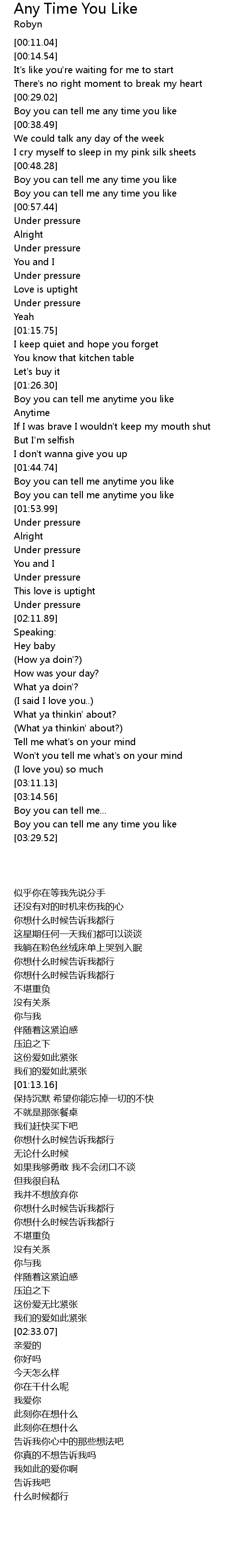 Boy you can tell me anytime you like |