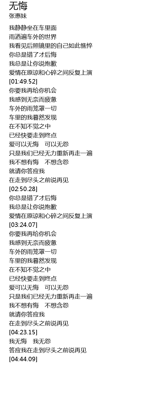| [04:25.29] | wǒ wú huǐ wǒ wú yuàn |