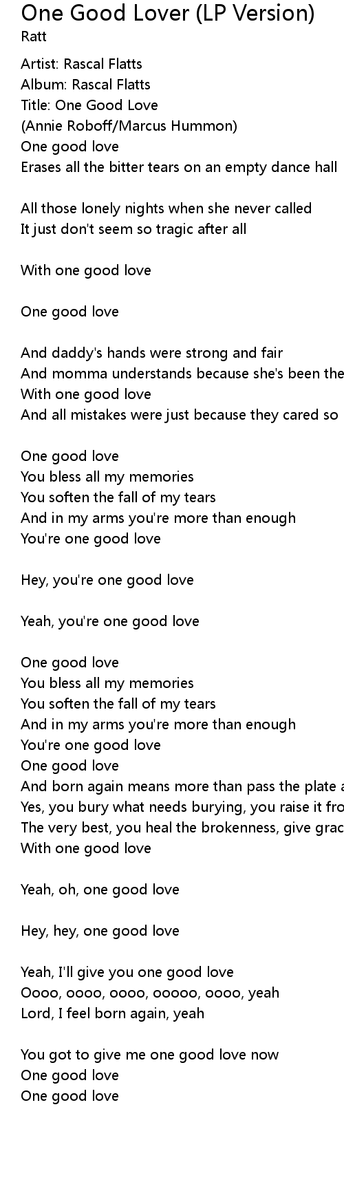 Yeah, oh, one good love |