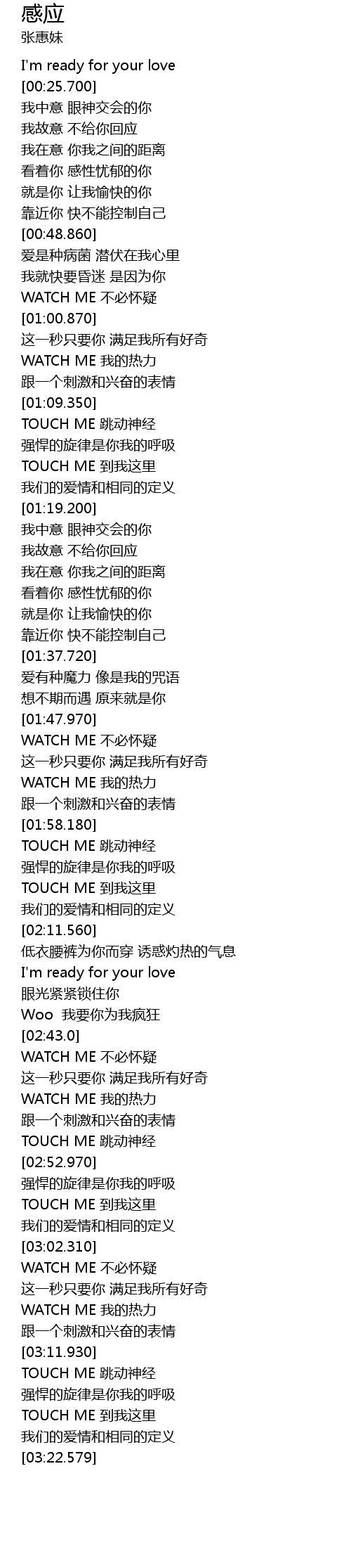 | [03:17.230] | TOUCH ME 到我这里 |