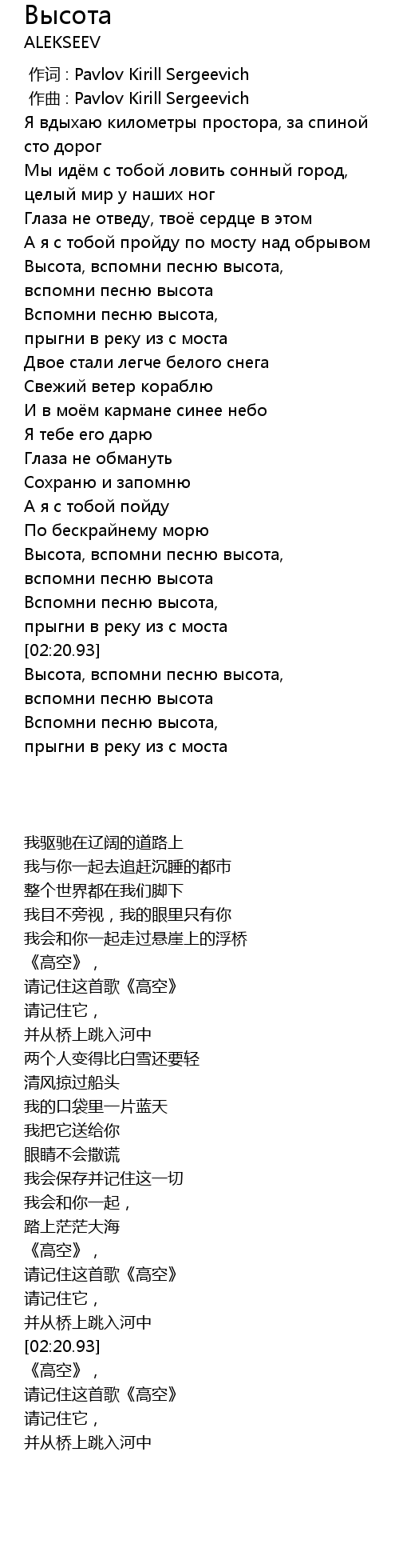 | [00:39.91] | Высота, вспомни песню высота, |