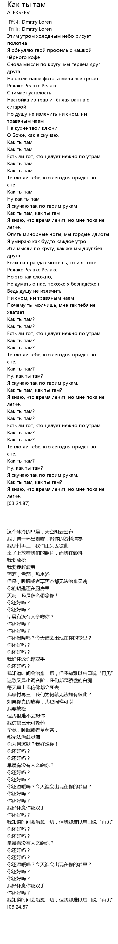 | [01:03.15] | Как ты там |