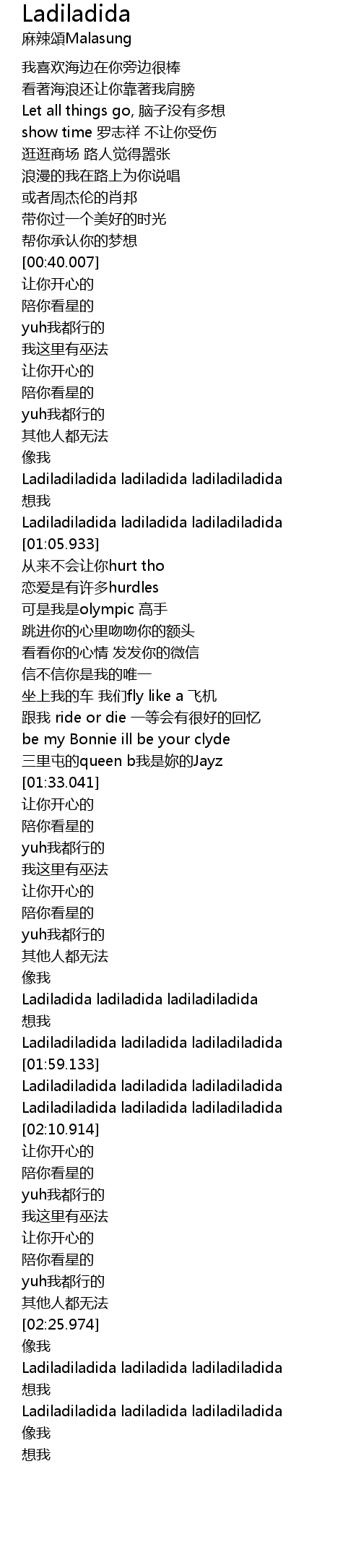 | [01:01.463] | Ladiladiladida ladiladida ladiladiladida |