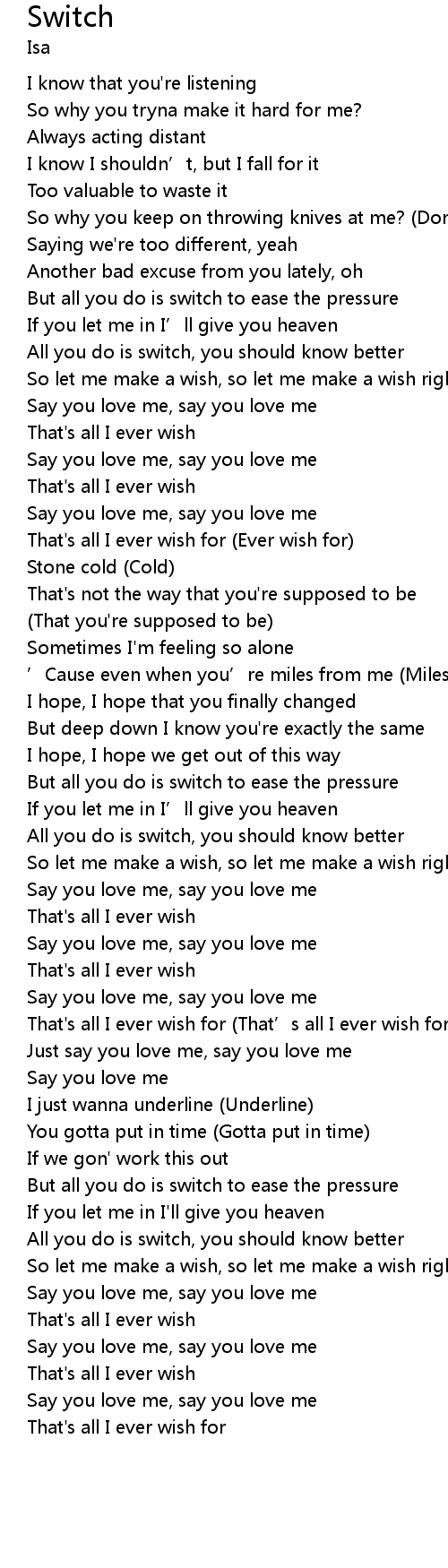 | [00:39.10] | All you do is switch, you should know better |