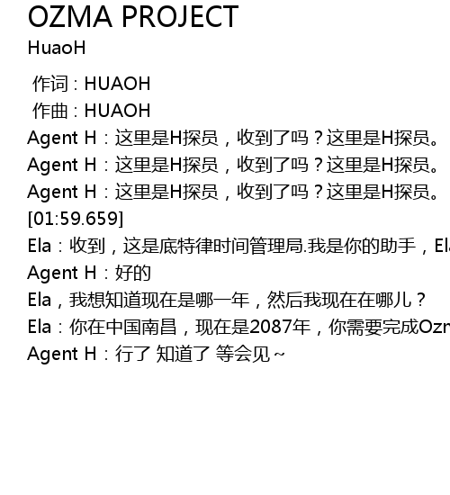 | [00:03.024] | Agent H:这里是H探员,收到了吗?这里是H探员。 |