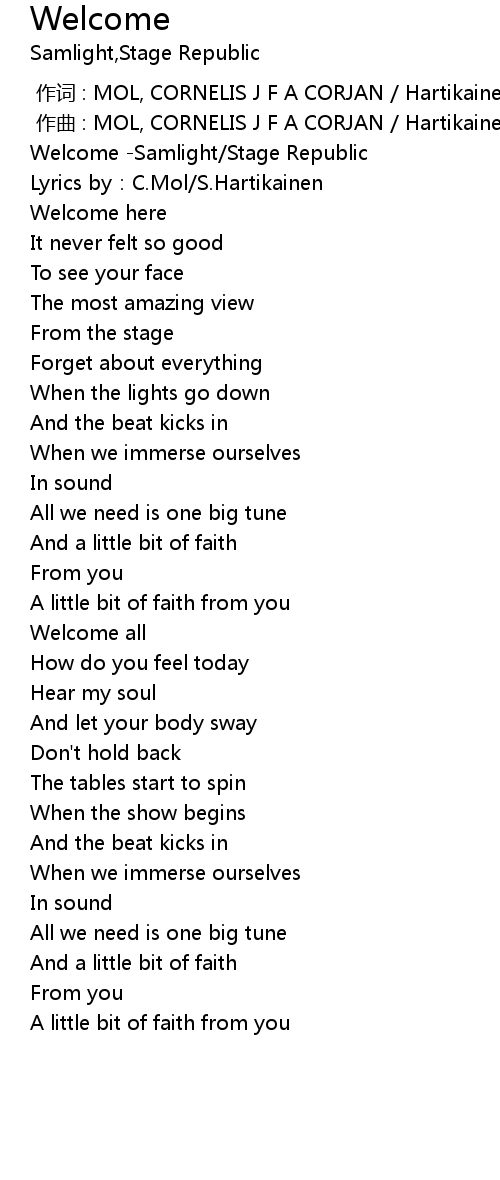 | [00:00.446] | Welcome -Samlight/Stage Republic |