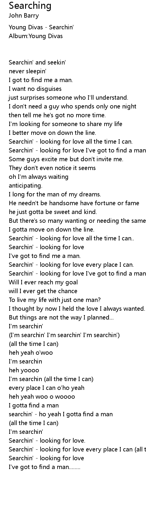 Searchin' - looking for love I've got to find a man..