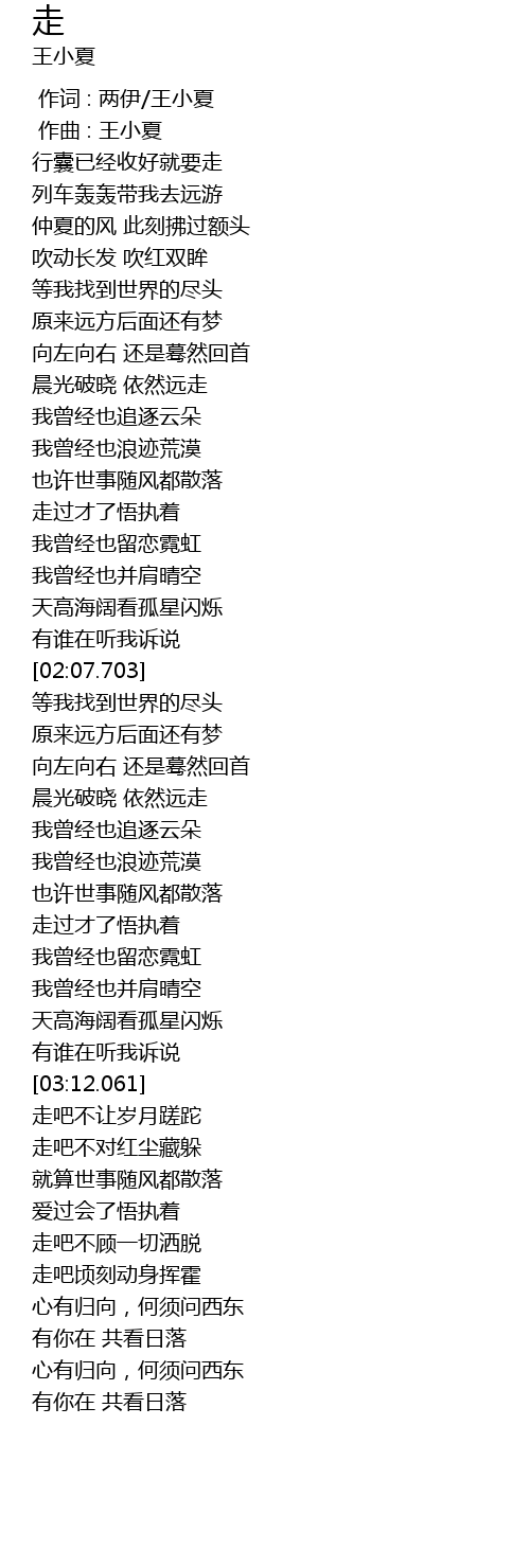 | [00:01.000] | 作曲 : 王小夏 |