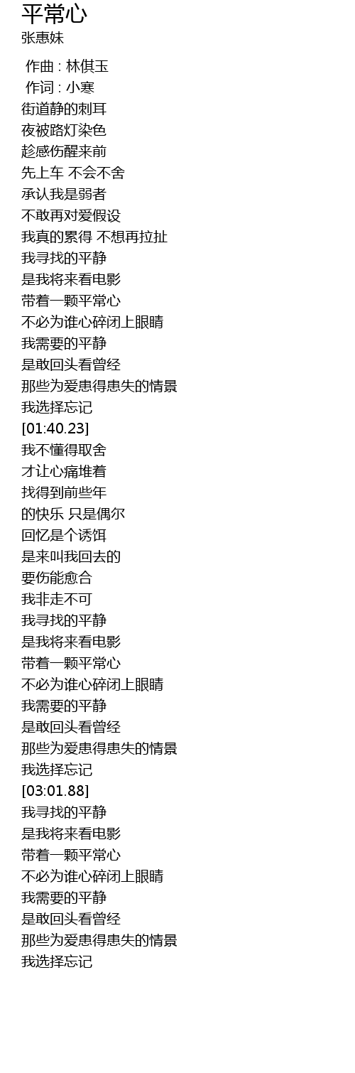 | [03:12.70] | 带着一颗平常心 |