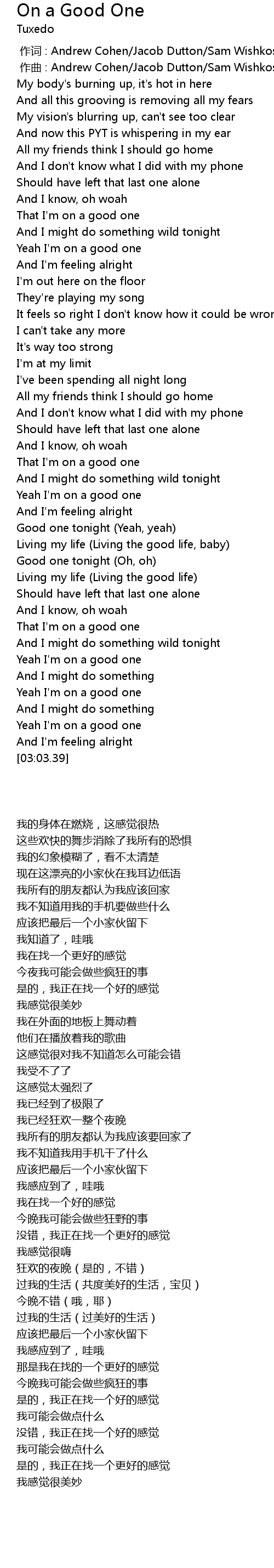 | [02:15.53] | Good one tonight (Oh, oh) |