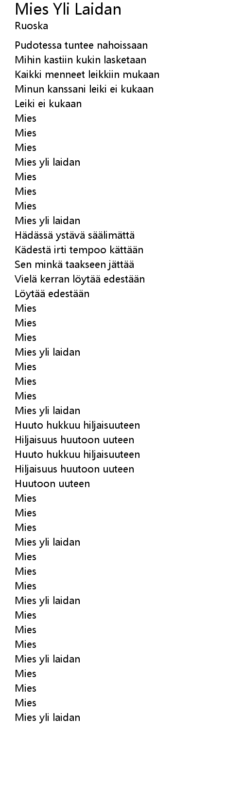| [00:53.19] | Mies yli laidan |