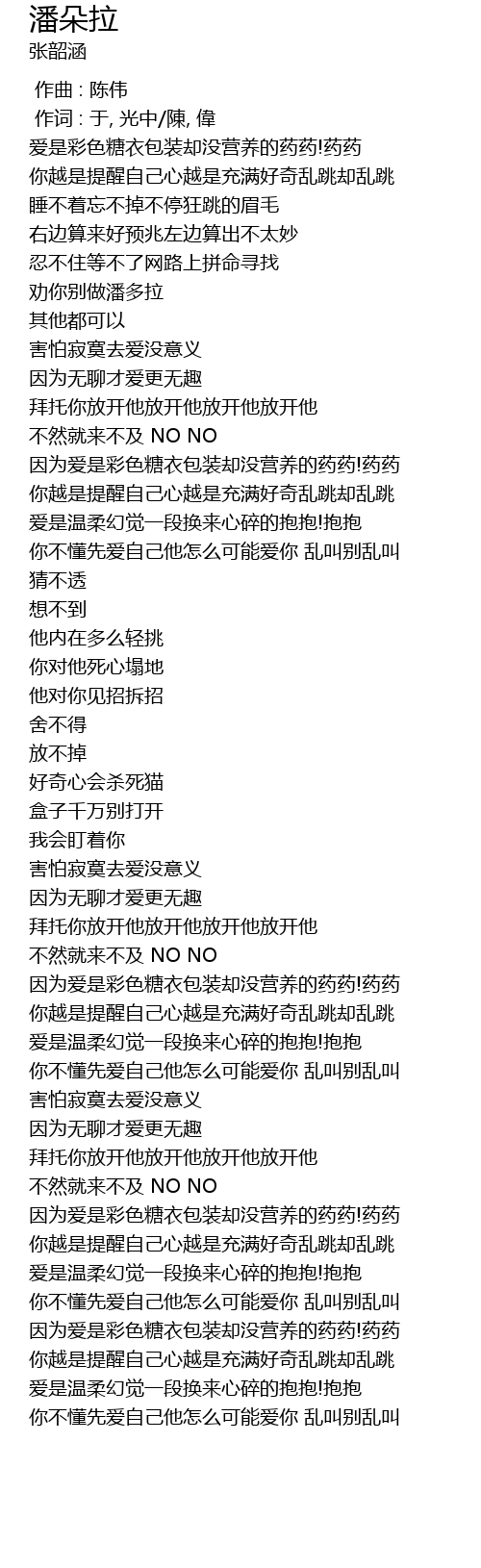 潘朵拉 歌词
