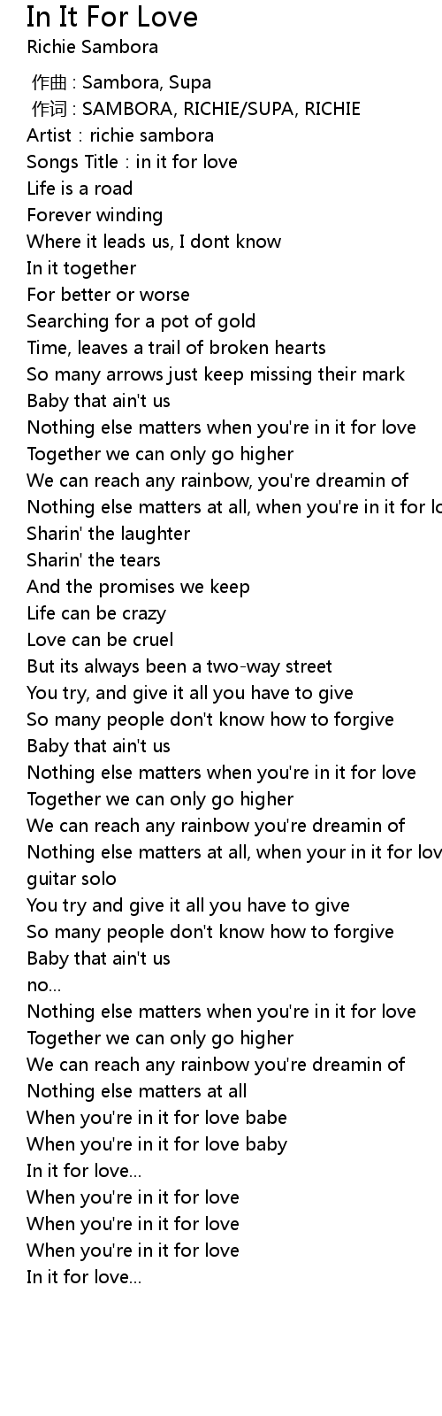 | [00:06.72] | Songs Title:in it for love |