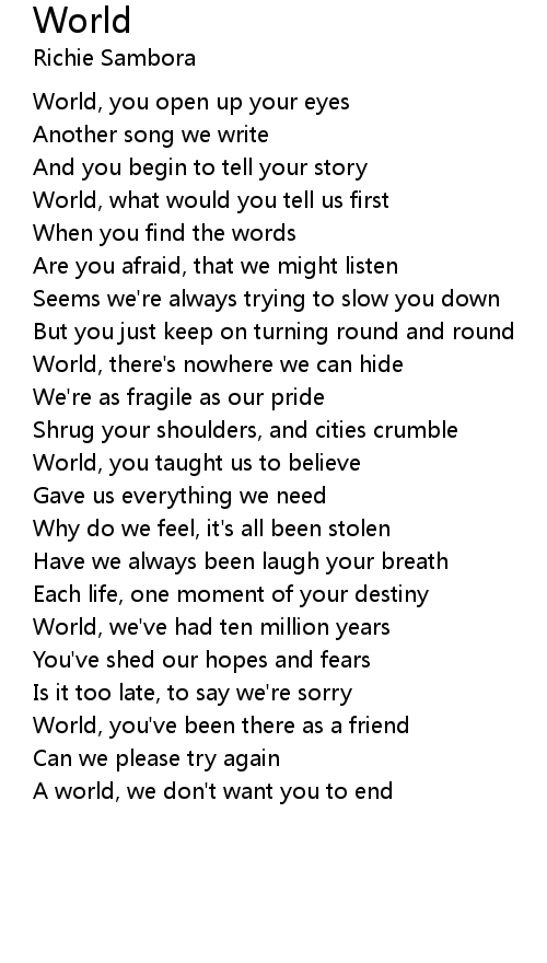 World, you open up your eyes |