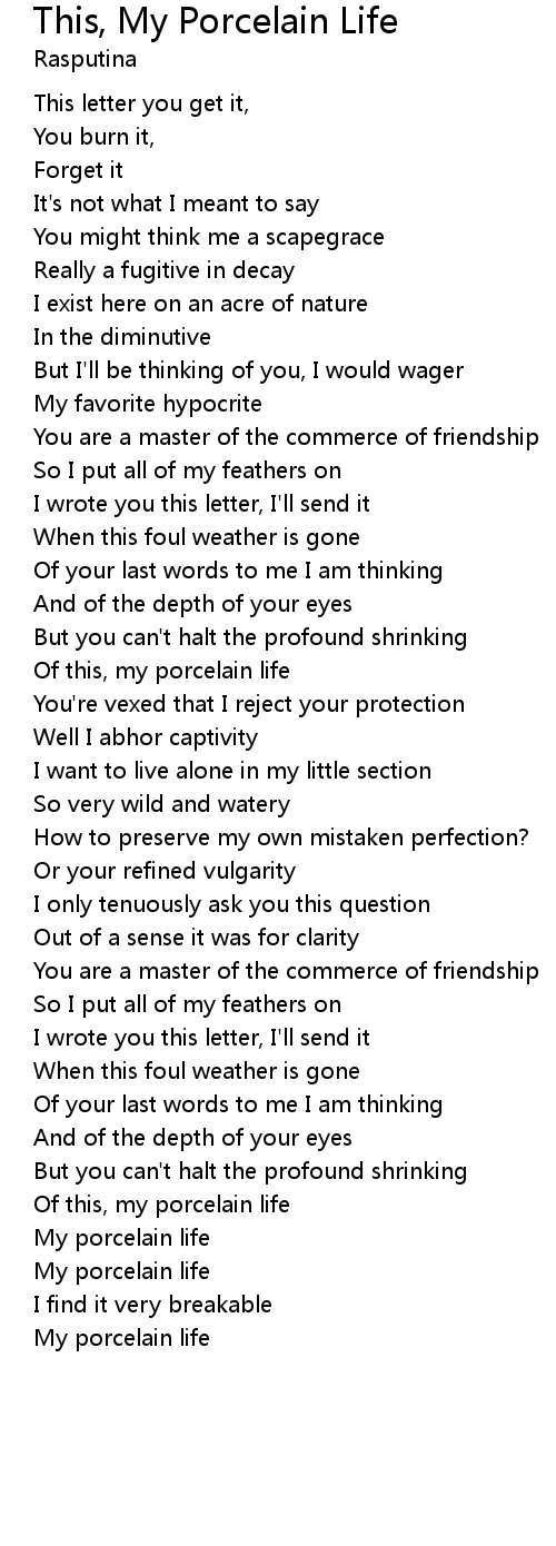 Of this, my porcelain life |