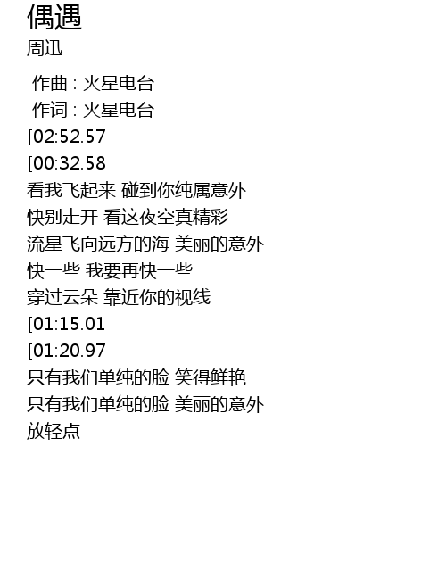 | [00:38.63] | 看我飞起来 碰到你纯属意外 |