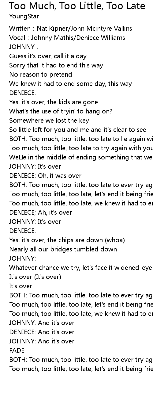| Vocal:Johnny Mathis/Deniece Williams | |