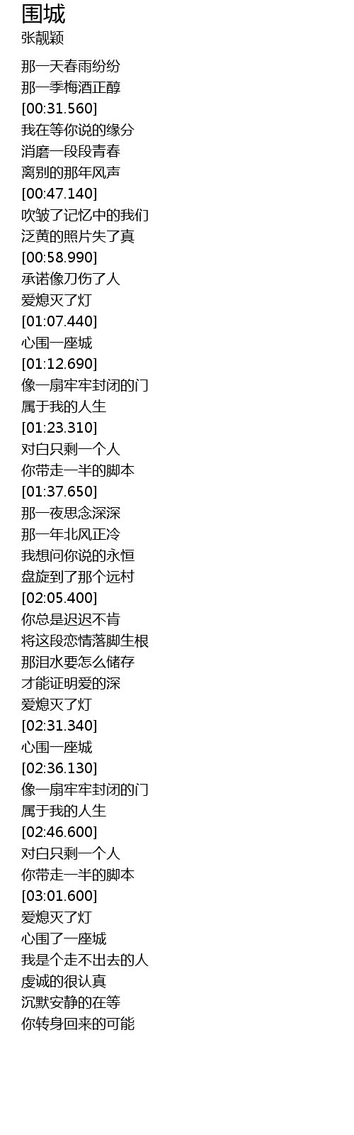 | [03:28.329] | 心围了一座城 |
