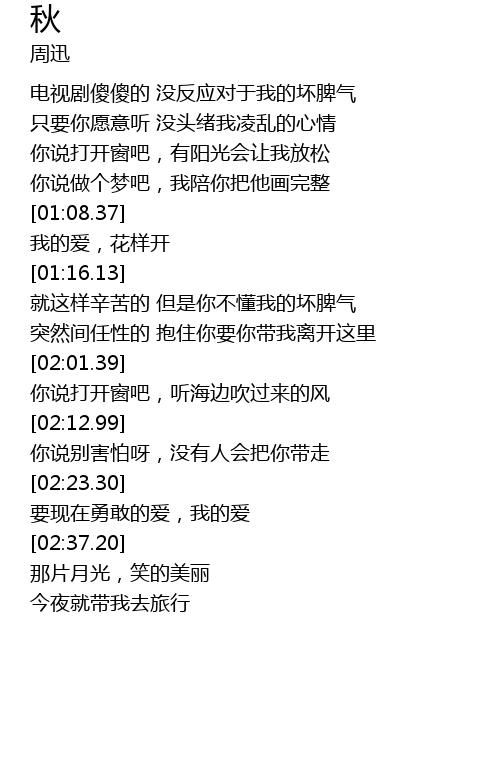 | [01:08.92] | 我的爱,花样开 |